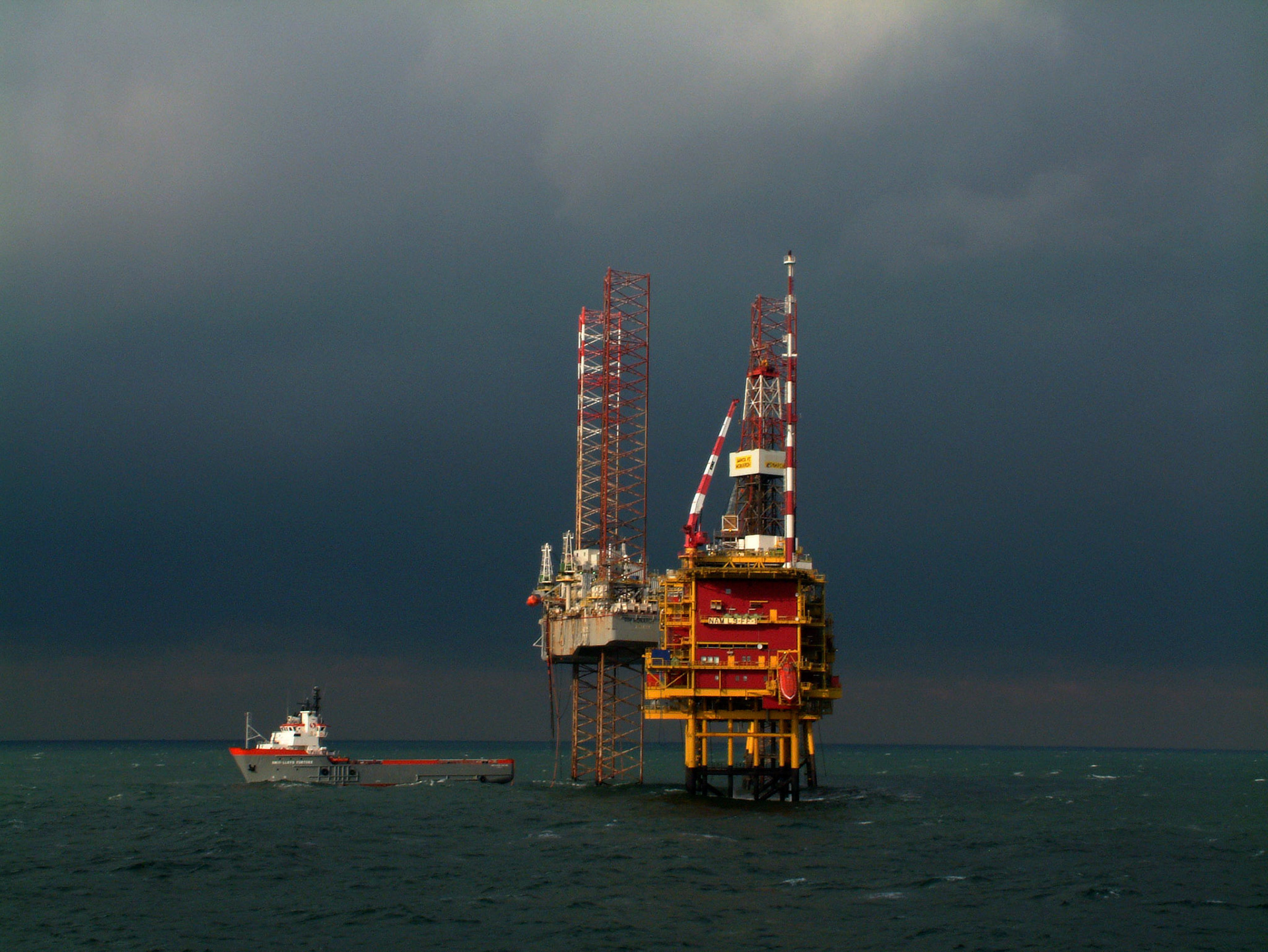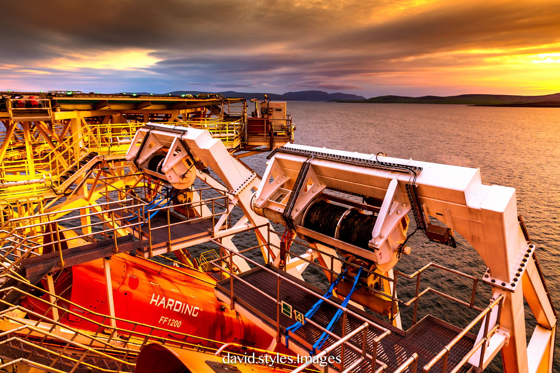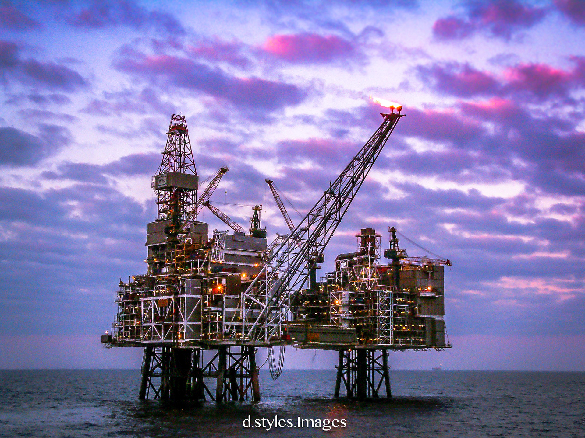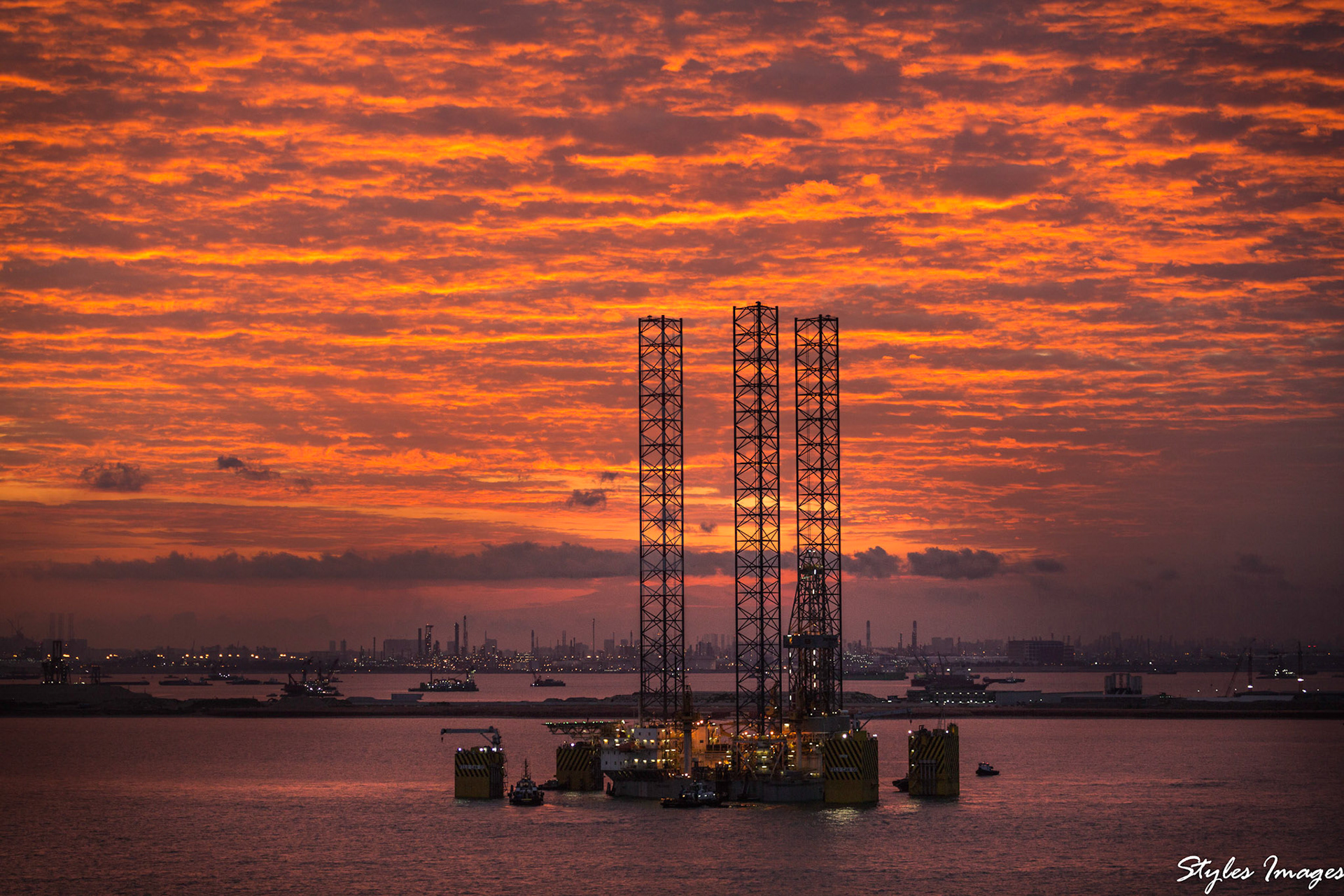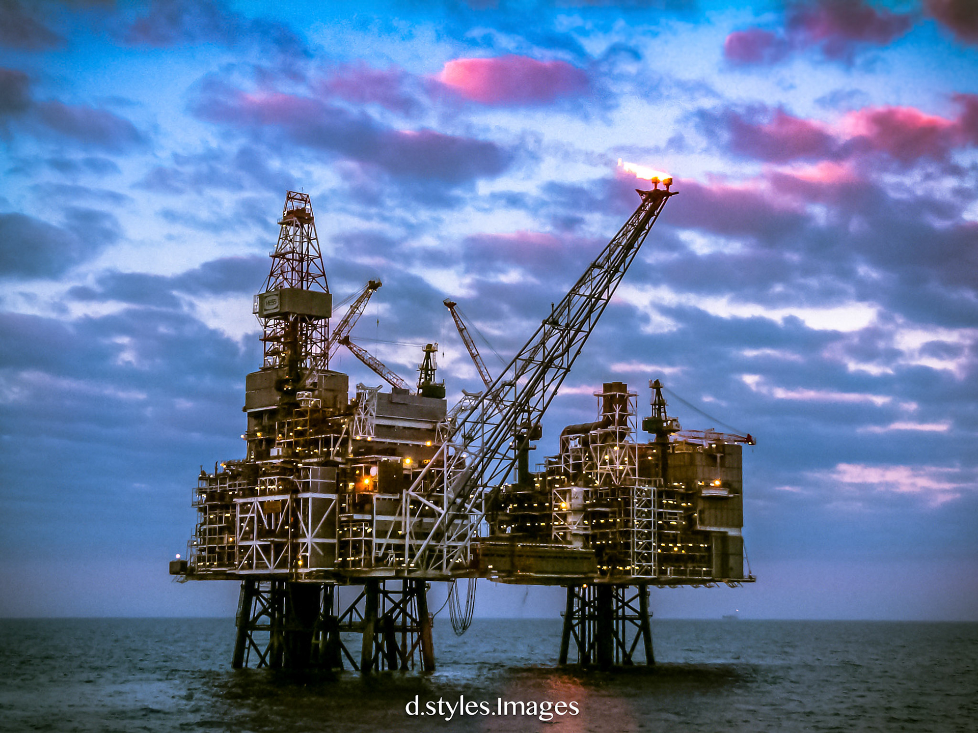Jack up sunset North Sea