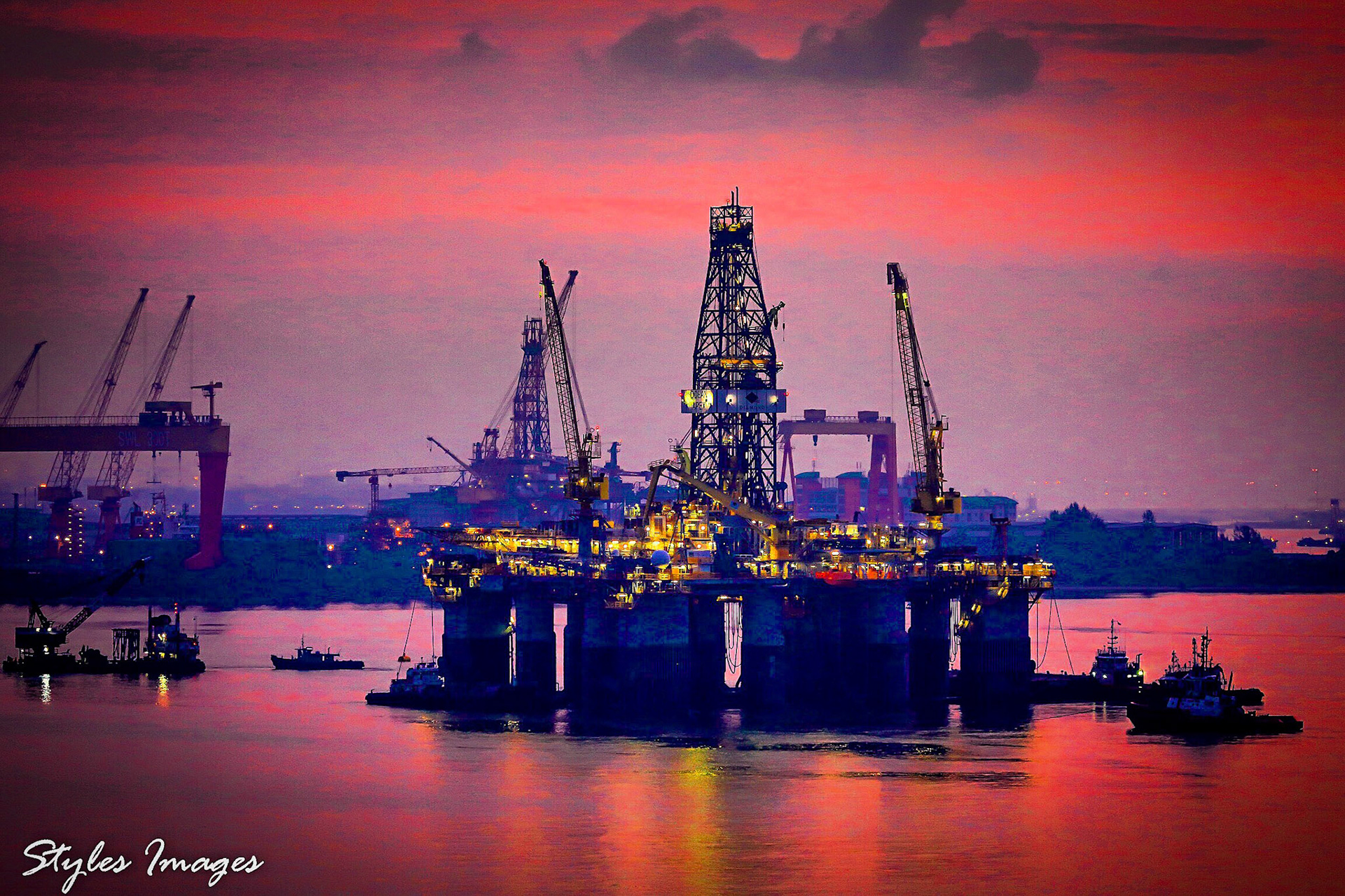 Jackup at sunset